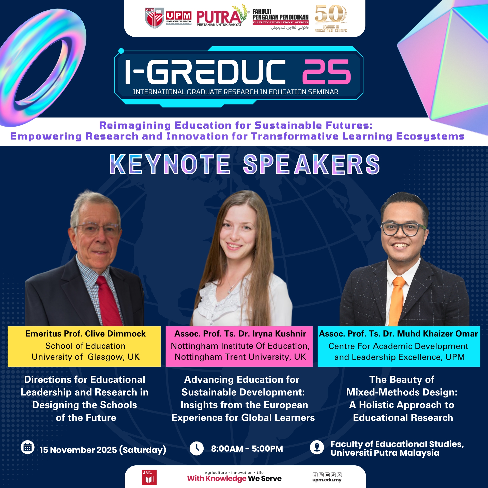 INTERNATIONAL GRADUATE RESEARCH IN EDUCATION SEMINAR 2025 (I-GREduc 2025) , UPM